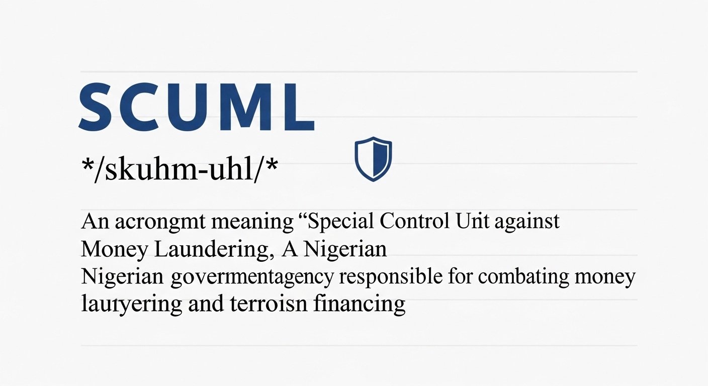 SCUML’s meaning is the Special Control Unit Against Money Laundering, the agency that enforces AML/CFT regulations in Nigeria.
